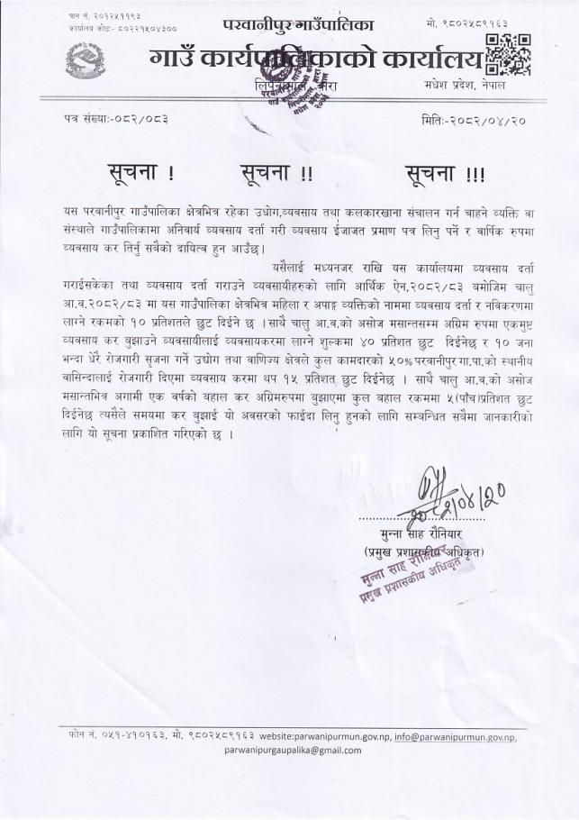 व्यवसाय करमा ४०% छुट सम्बन्धमा ।